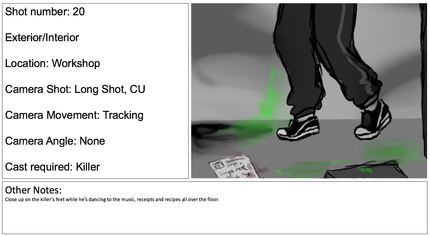 Here is the storyboard we created for the opening of our film (all of the slides are drawn by Immy). Although the shots will probably not look the same in the finished opening (since this is just a basic concept and we will probably have to change bits and pieces to make the most of the environment and circumstances, and adapt to our abilities), this has helped us to solidify our ideas for the sequence.